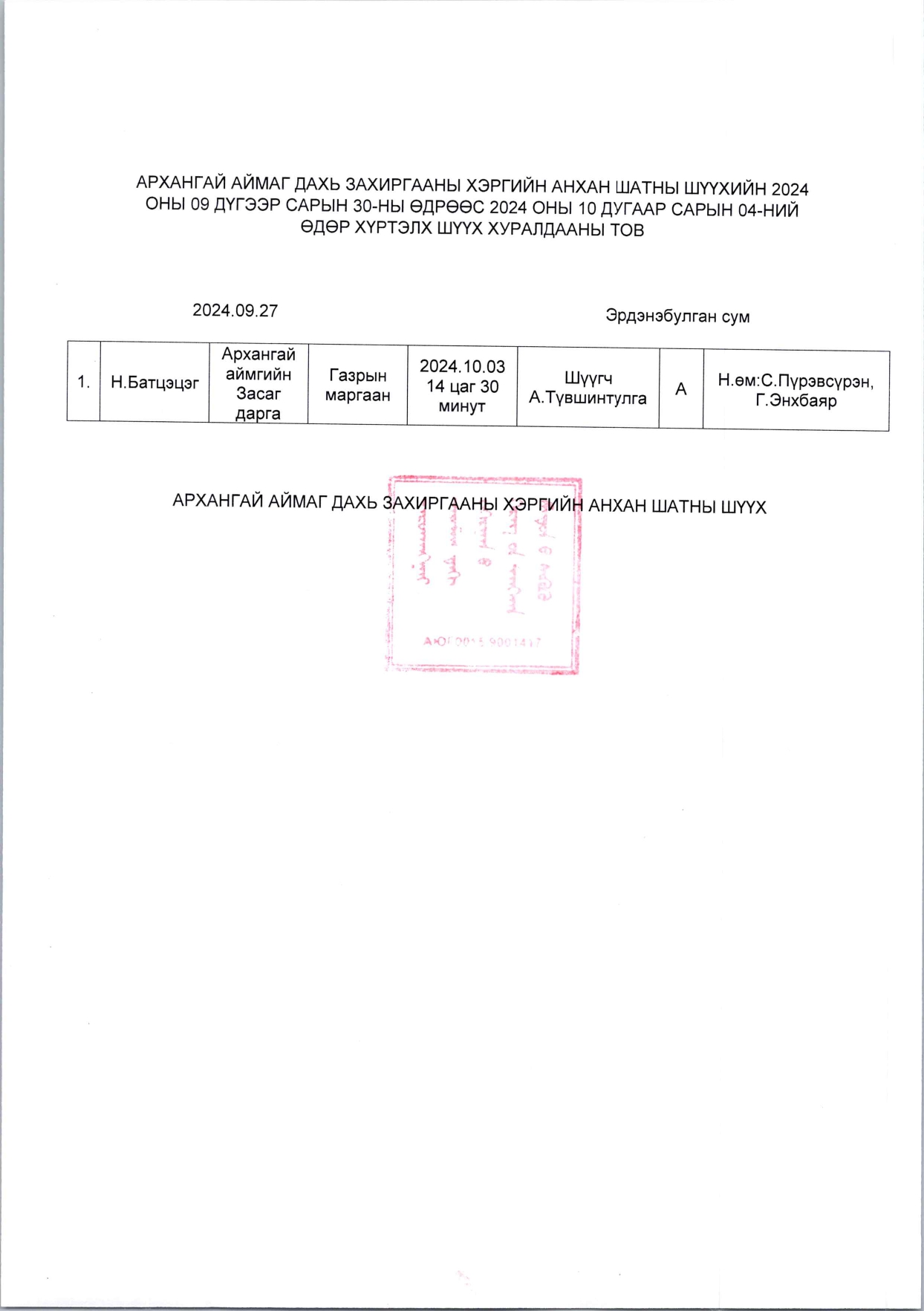 2024.09.30-2024.10.04 хүртэлх шүүх хуралдааны тов