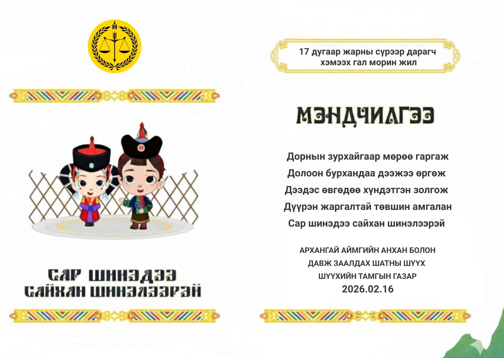 Архангай аймаг дахь Захиргааны хэргийн анхан шатны шүүхийн 2026 оны 3 дугаар сарын шүүн таслах ажиллагааны мэдээ