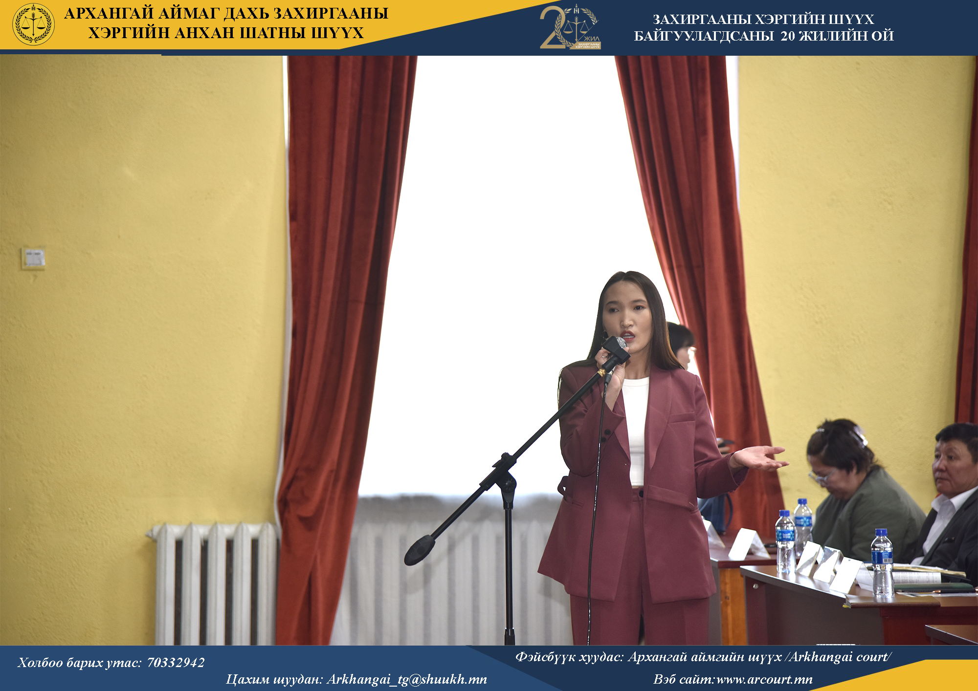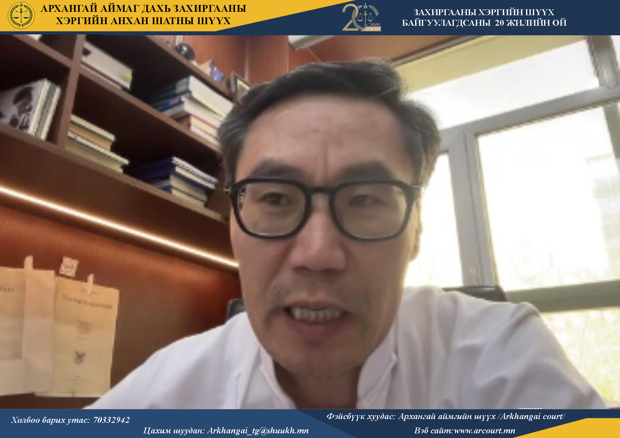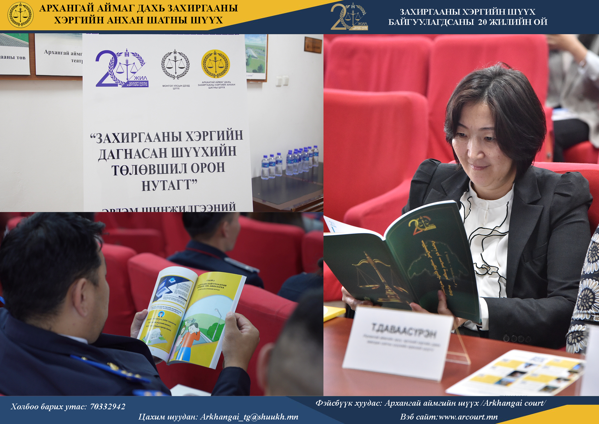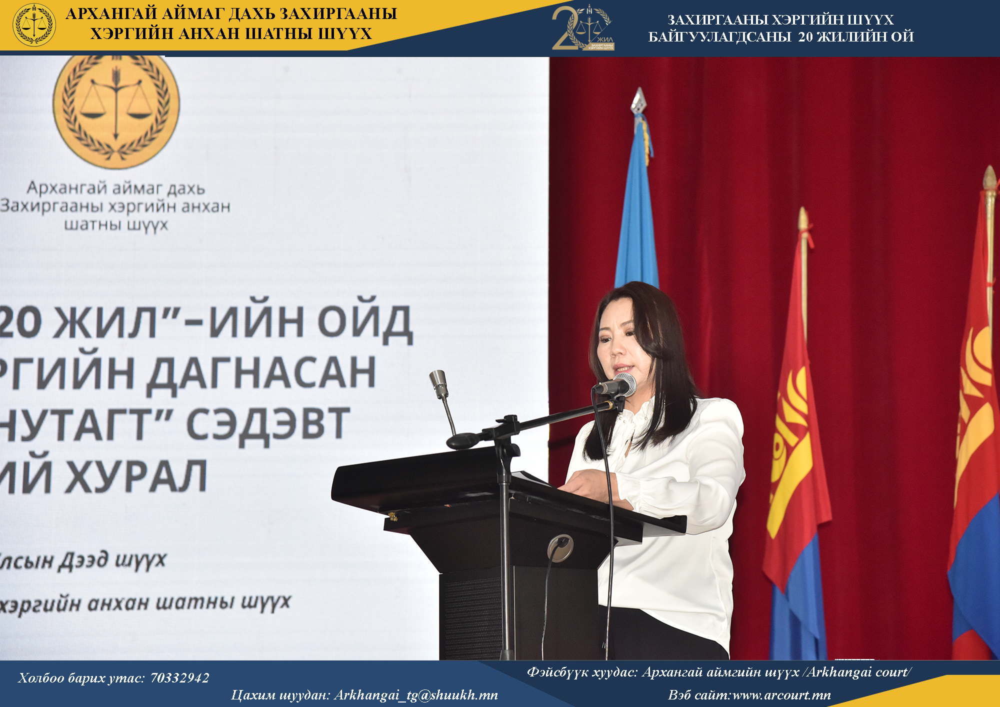 Монгол Усад Захиргааны хэргийн дагнасан шүүх байгуулагдсаны 20 жилийн хүрээнд "Захиргааны хэргийн дагнасан шүүхийн төлөвшил орон нутагт" сэдэвт хурлыг Архангай аймаг дахь Захиргааны хэргийн анхан шатны шүүхээс санаачлан Монгол Улсын дээд шүүх, Архангай аймгийн Засаг даргын Тамгын газрын дэмжлэг оролцоотойгоор хамтран 2024 оны 05 дугаар сарын 10-ны өдөр Архангай аймгийн Засаг даргын Тамгын газрын их танхимд зохион байгууллаа.
