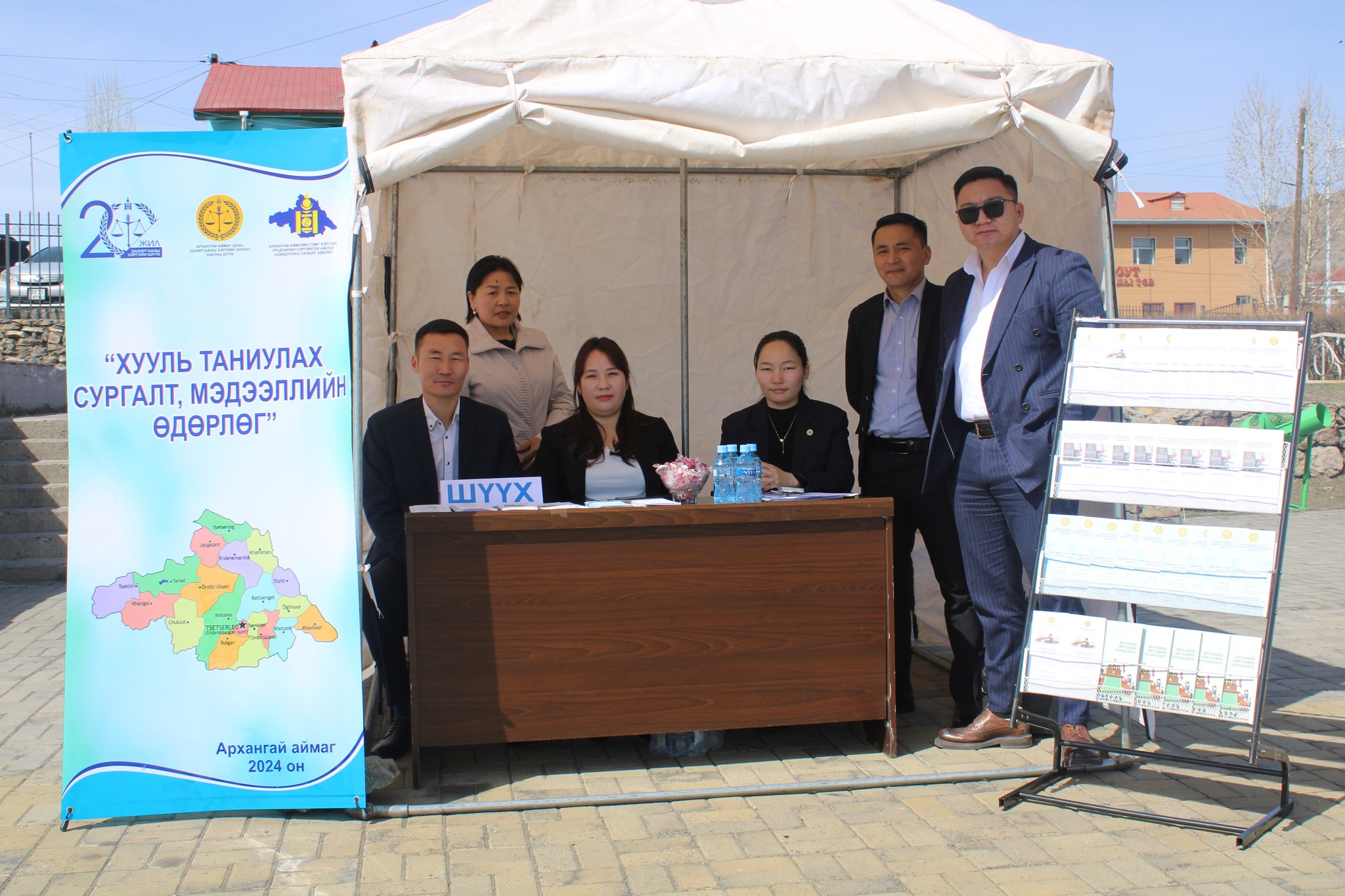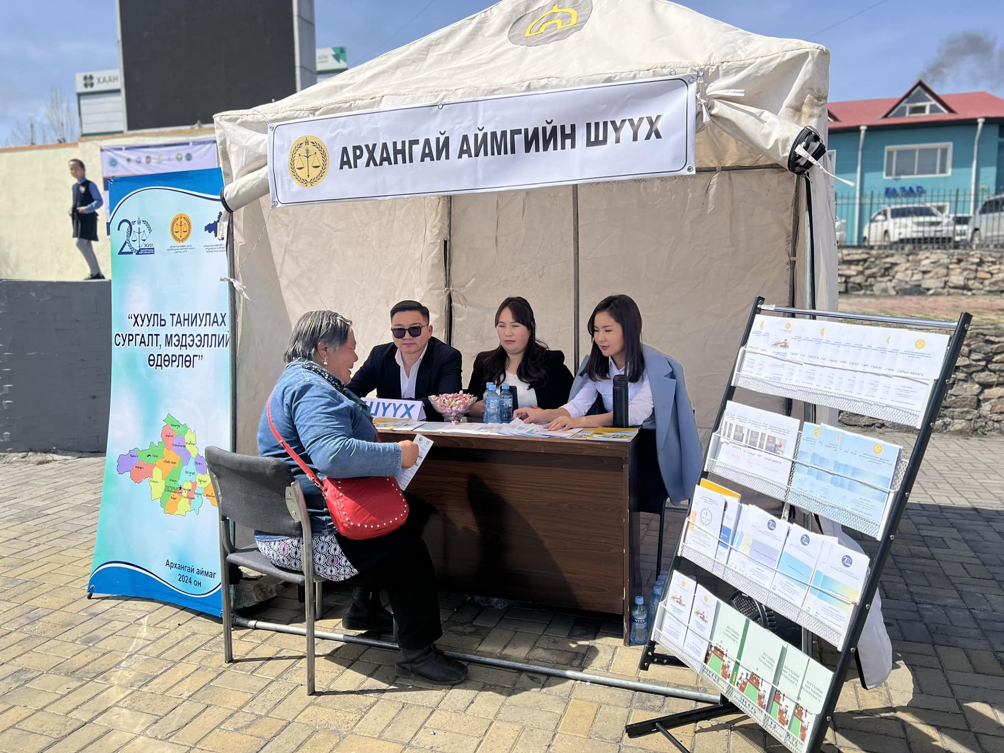Өдөрлөгт Архангай аймаг дахь шүүхүүдийн үйл ажиллагааны танилцуулга, шүүн таслах ажлын мэдээллийг иргэдэд өгч, шүүхэд нэхэмжлэл хүсэлт гаргах зөвлөгөөг өгч ажиллалаа.