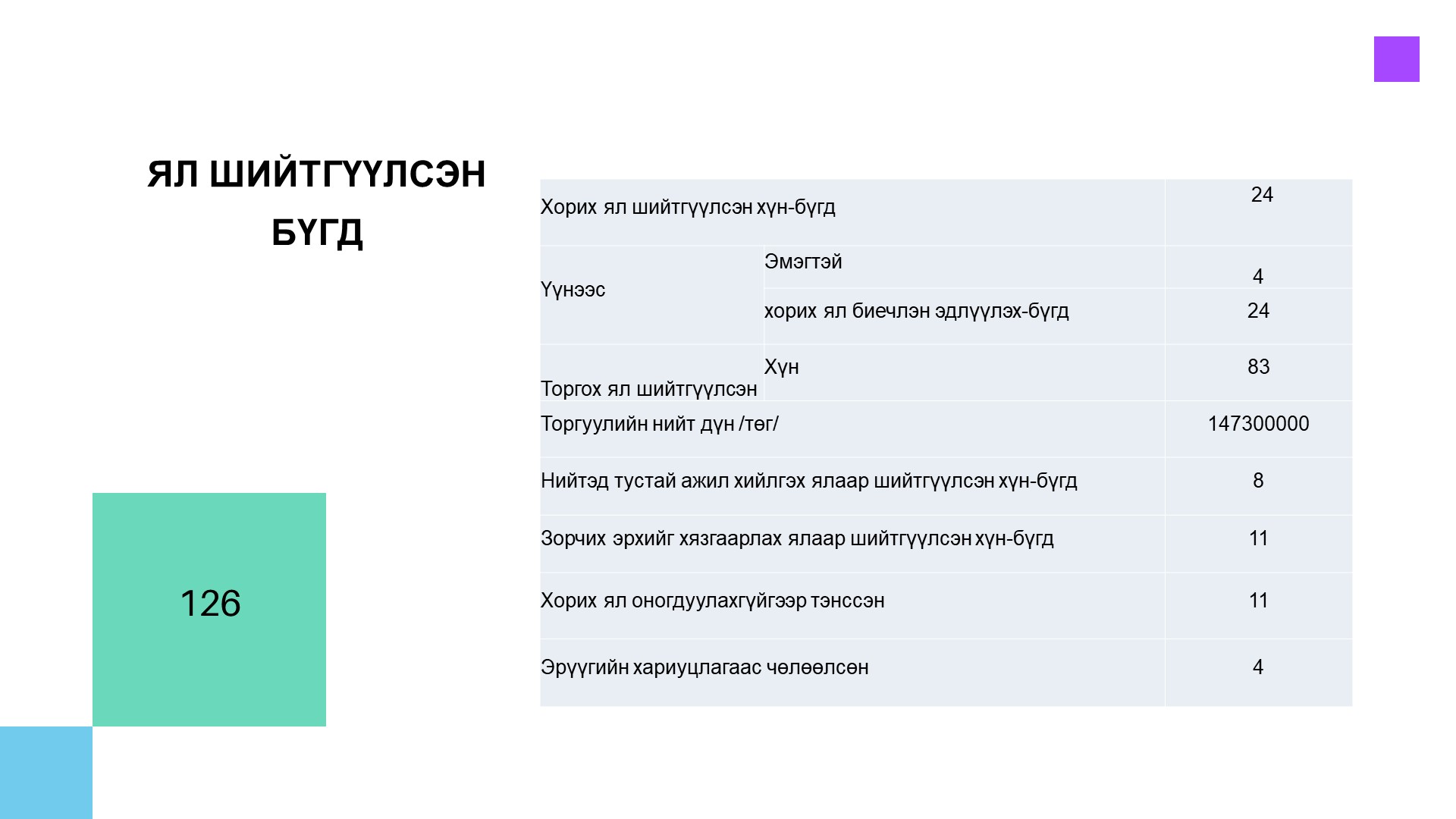 АРХАНГАЙ АЙМГИЙН ЭРҮҮ, ИРГЭНИЙ ХЭРГИЙН ДАВЖ ЗААЛДАХ ШАТНЫ ШҮҮХИЙН 2024 ОНЫ ХАГАС ЖИЛИЙН ХЭРЭГ ХЯНАН ШИЙДВЭРЛЭХ АЖИЛЛАГААНЫ МЭДЭЭЛЭЛ