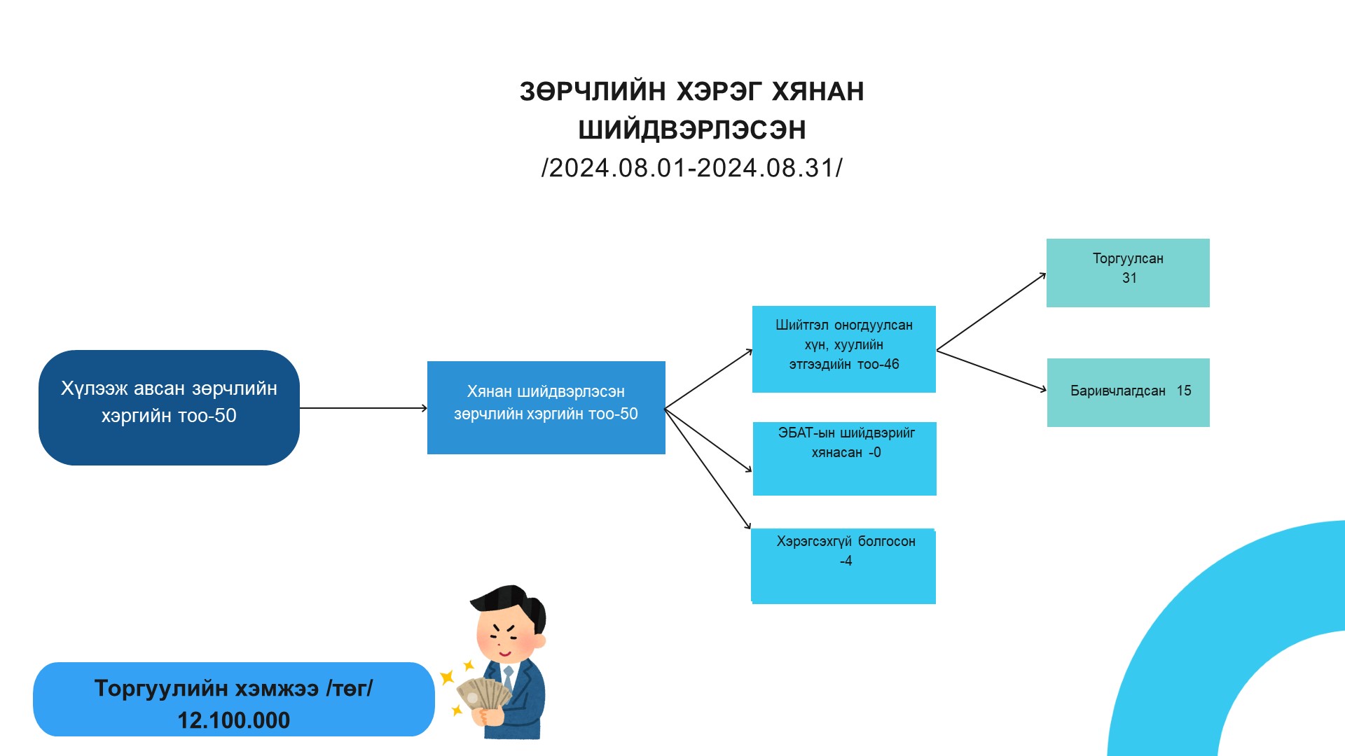Архангай аймаг дахь сум дундын эрүүгийн хэргийн анхан шатны шүүхийн шүүн таслах ажиллагааны 2024 оны 8 дугаар сарын мэдээлэл