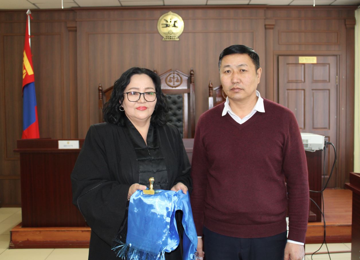 Архангай аймаг дахь сум дундын анхан шатны шүүхийн шүүгчдийн зөвлөгөөнөөр ерөнхий шүүгчээр сонгогдсон Д.Байгалмаад шүүхийн тамга, тэмдгийг гардуулан өгч, баяр хүргэв.