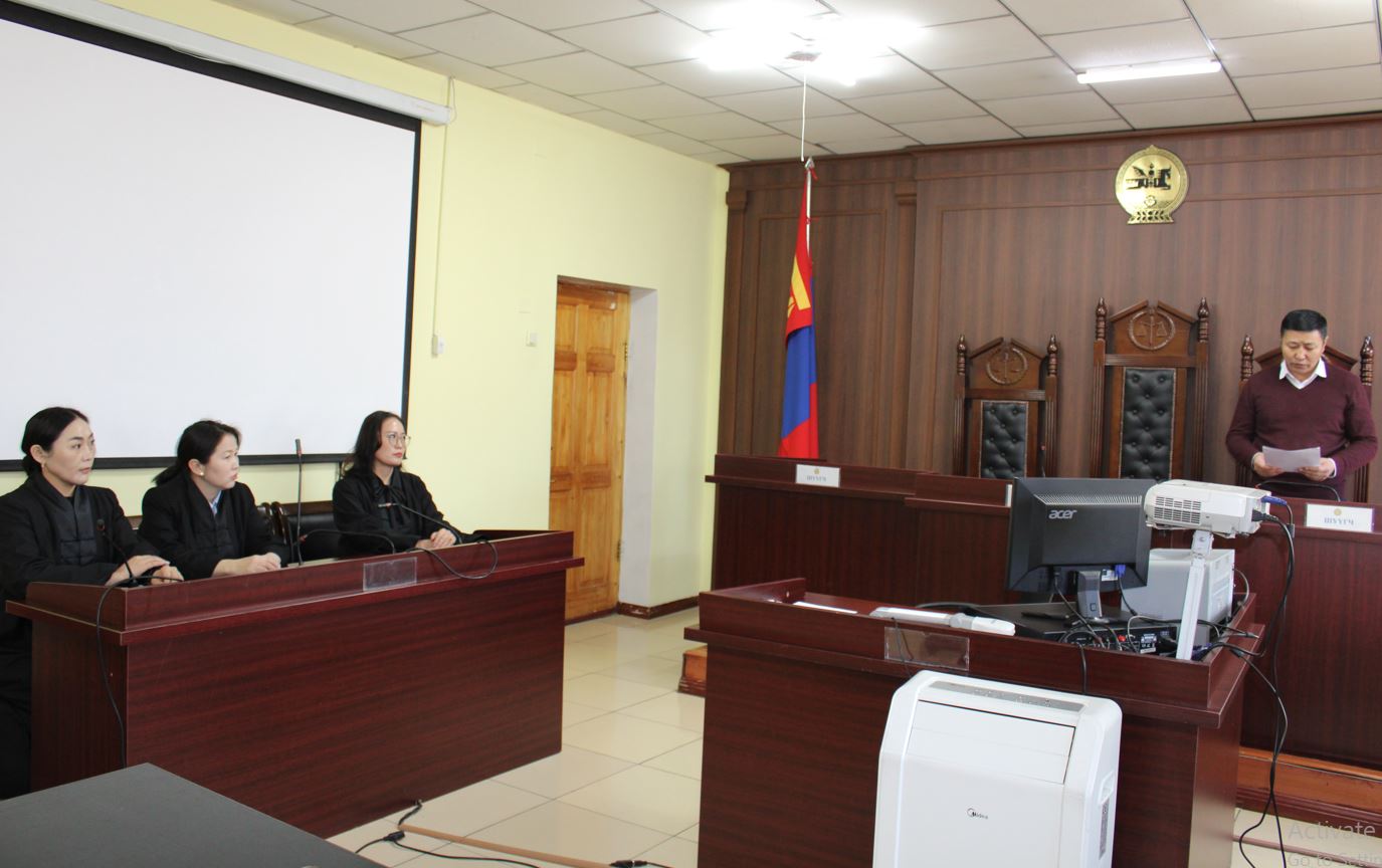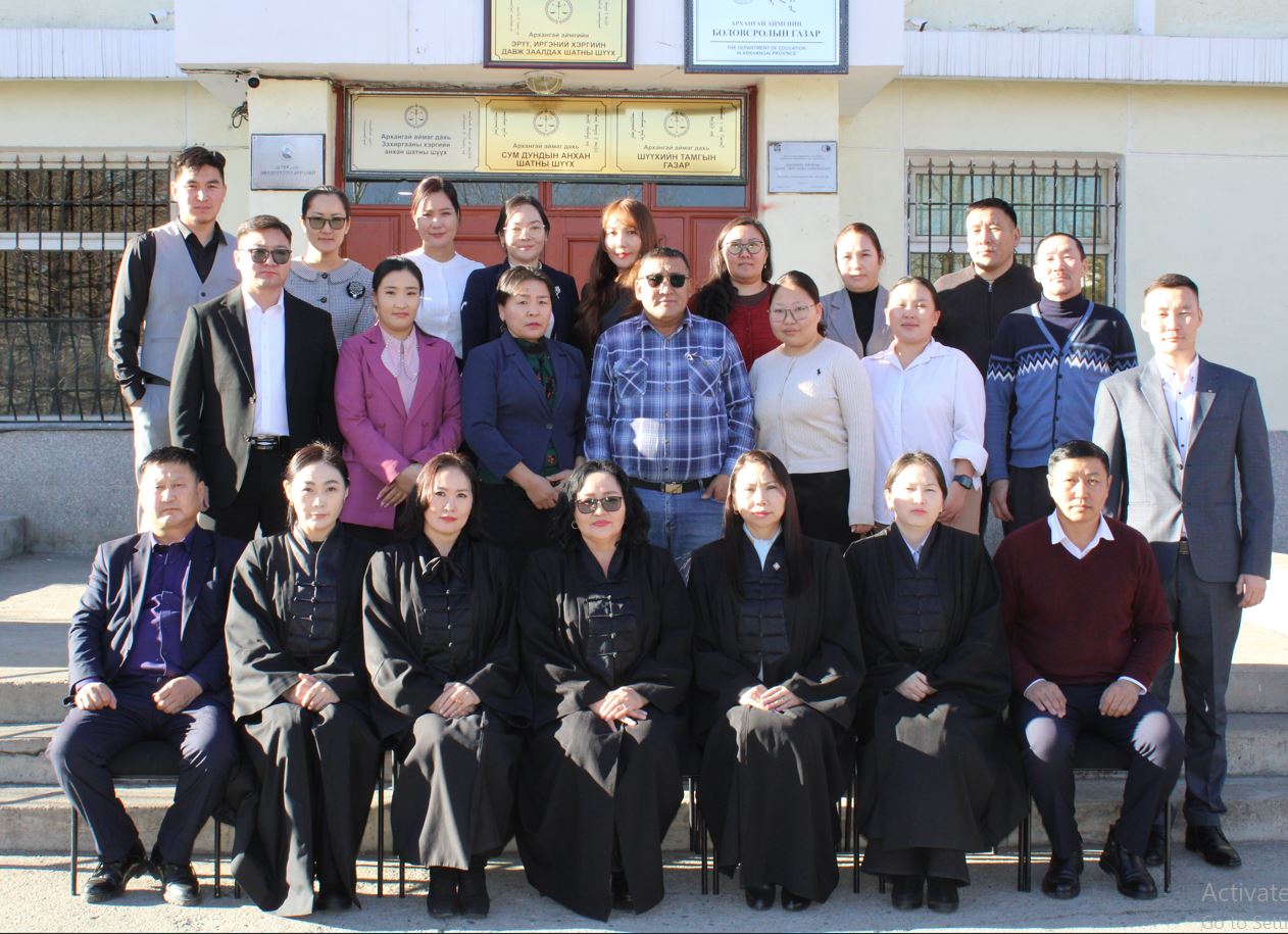 2026-02-04 | 635Монгол Улсын Ерөнхийлөгчийн 2024 оны 12 дугаар сарын 30-ны өдрийн 189 дүгээр Зарлигаар Шүүх байгуулах тухай хуулийн шинэчилсэн найруулгыг дагаж мөрдөх журмын тухай хуулийн 2 дугаар зүйлийн дагуу шинээр томилогдсон Архангай аймаг дахь сум дундын анхан шатны шүүхийн шүүгч Доржийн Байгалмаа, Пэрлээгийн Гандолгор, Чадраабалын Жаргалан, Пүрэвсүрэнгийн Дониддолгор, Дашбумбын Орхонтамир нарт шүүгчийн зарлигийг Архангай аймаг дахь шүүхийн Тамгын газрын дарга Ц.Эрдэнэцогт хамт олны өмнө уншиж танилцуулан, шинээр томилогдсон шүүгчдэд баяр хүргэж, ажлын амжилт хүсэн ерөөлөө.
