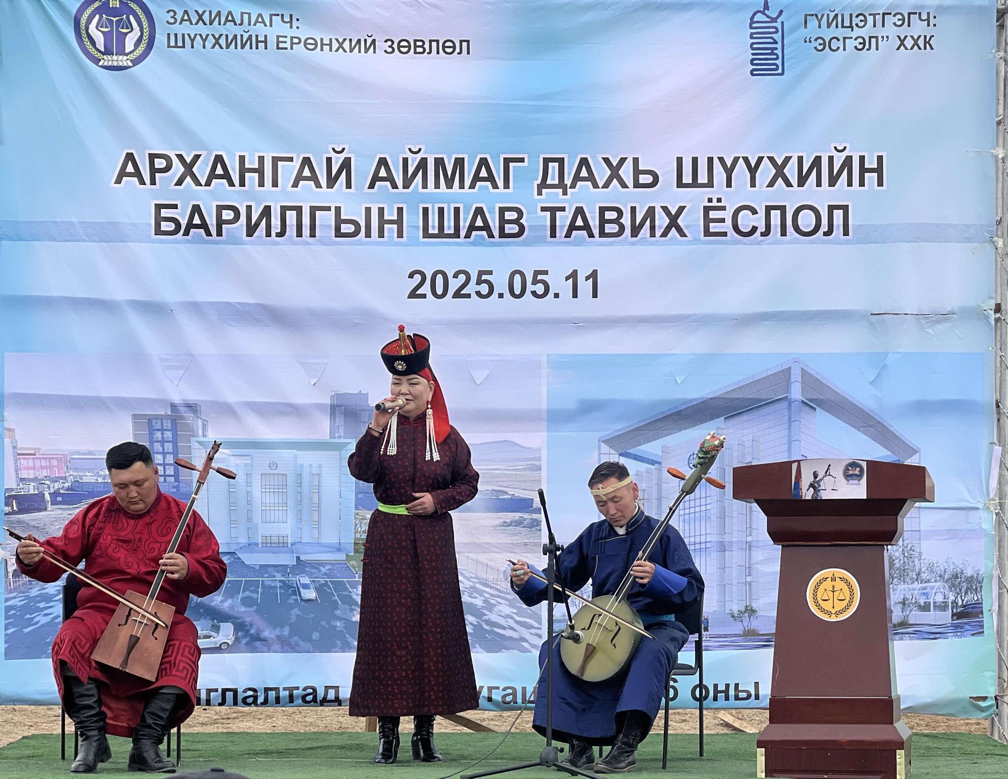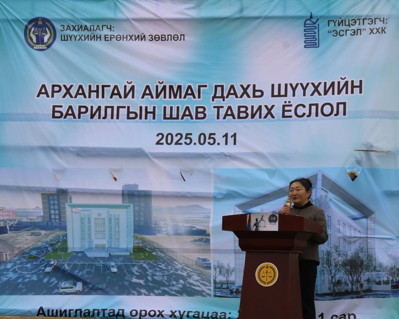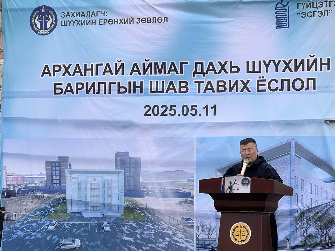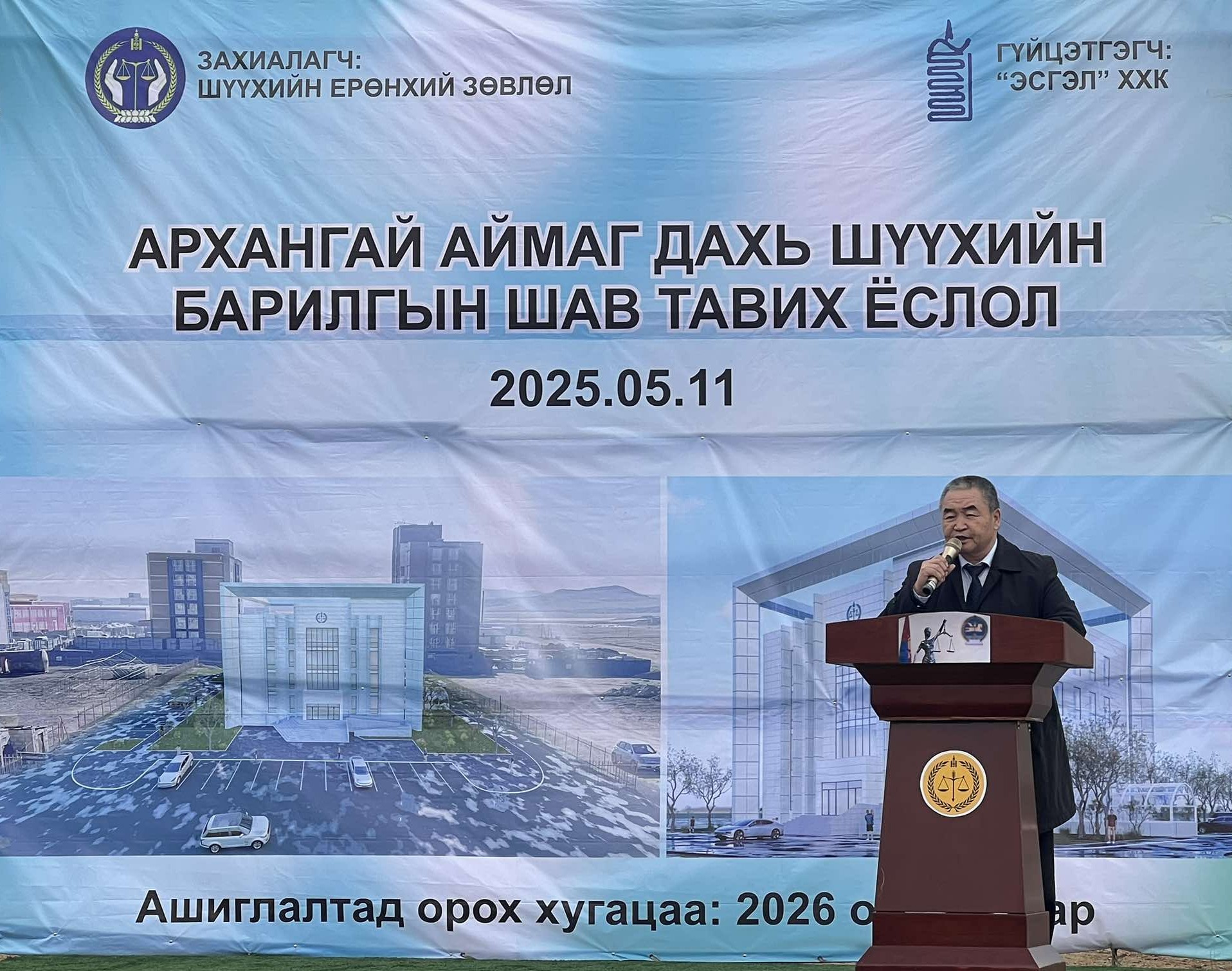 Архангай аймаг дахь шүүхийн барилга байгууламжийг “Эсгэл” ХХК 8.0 тэрбум төгрөгийн төсөвт өртгөөр барих бөгөөд 2026 оны 11 дүгээр сард ашиглалтад орно.