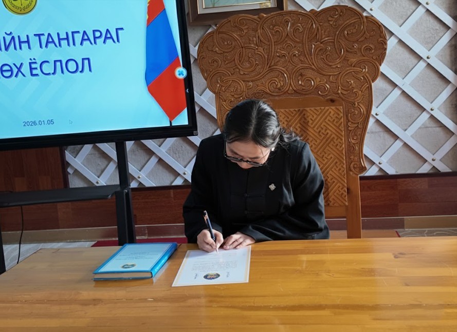 Шүүгчийн тангараг өргөх ёслолыг 2026 оны 1 дүгээр сарын 5-ны өдөр Архангай аймгийн Засаг даргын Тамгын газрын Ёслол, хүндэтгэлийн танхимд зохион байгууллаа.
