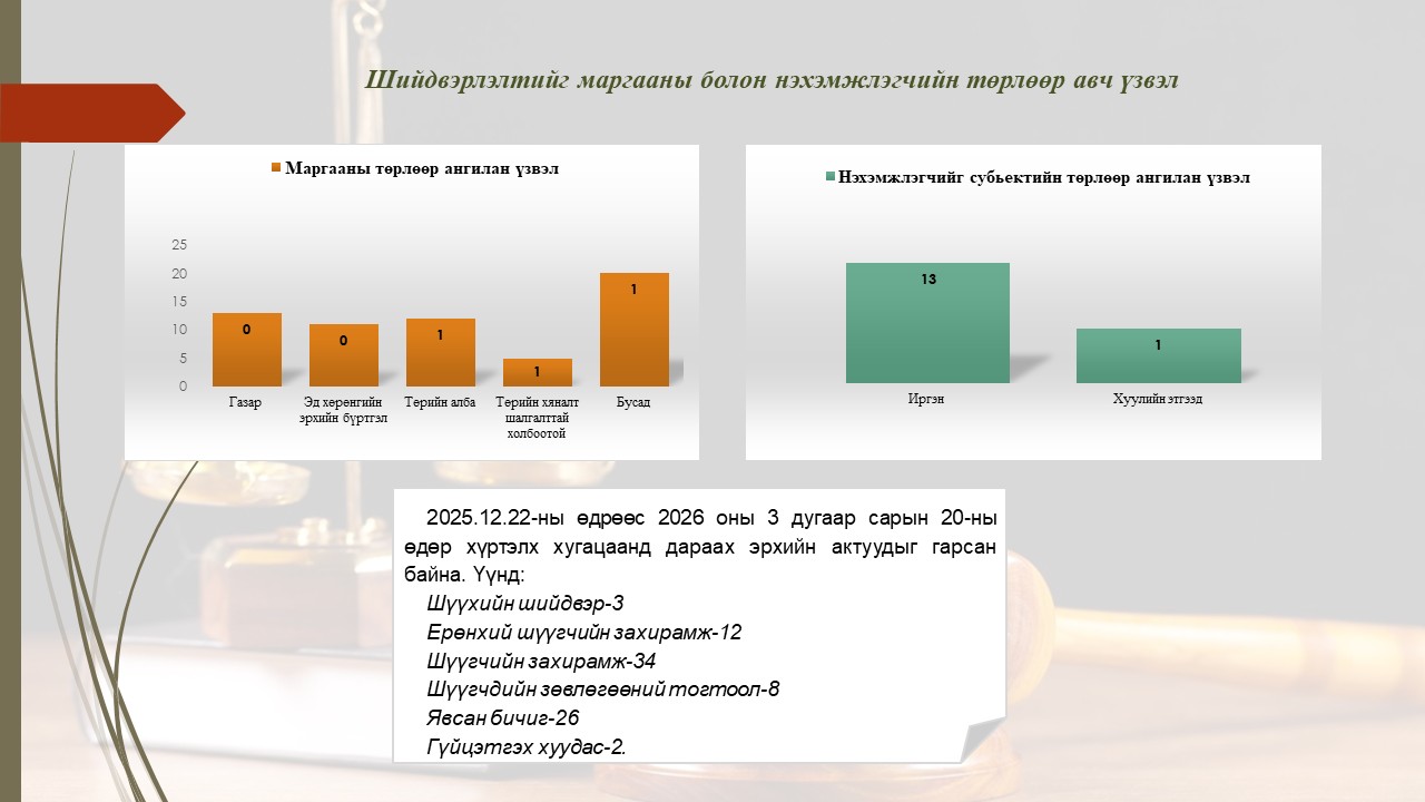 Архангай аймаг дахь Захиргааны хэргийн анхан шатны шүүх 2026 оны 1 дүгээр улирлын шүүн таслах ажиллагааны мэдээ