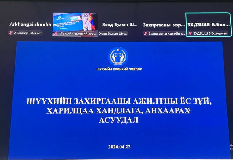 Шүүхийн захиргааны ажилтны ёс зүй, харилцаа хандлагын сургалтад цахимаар хамрагдлаа
